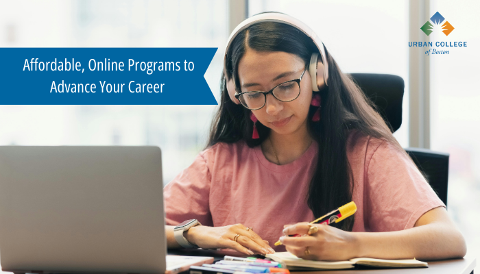 Online college is typically more affordable than traditional, on-campus programs thanks to savings on transportation, parking, childcare, and housing. At Urban College, we are committed to providing affordable, high-quality education for all students. Bonus: No dealing with Boston traffic to get to class!